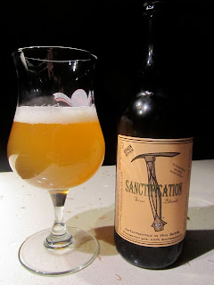 Sanctification is brewed by Russian River in California. They have gained quite a following and are revered as one of the top breweries in the US. They do a few different types of sour ales. Sanctification is brewed with 100% brettanomyces, and I have only had one bottle of this. Russian River sours are amazing beers, and if it wasn't for the price they would be my beer of choice. Because a lot of time goes into producing a beer like this, all of their sours are about $12 for a 12 oz. bottle. If you can do math, that is $1 per ounce! They are more of a special occasion type beer, unless you are George Clooney. This has a good amount of funk and is slightly sour.Supplication and Consecration (not pictured) are my favorite Russian River beers -- really incredible sours that will have you trying to find things to celebrate. Supplication is aged in Pinot Noir barrels for one year with sour cherries added. Consecration is aged in Cabernet barrels with currants added. These are both some of the most complex and tasty beers I've ever tried. You can really taste the wine barrels, and they are both perfectly sour. They even have a hint of a brandy-like quality. Start a beer piggy bank and save up for a Russian River party! I have also had another of their sours called Temptation (also not pictured), which is aged in Chardonnay barrels. While it is also a beer for the kings, if I have $12, I am spending it on one of the other three.